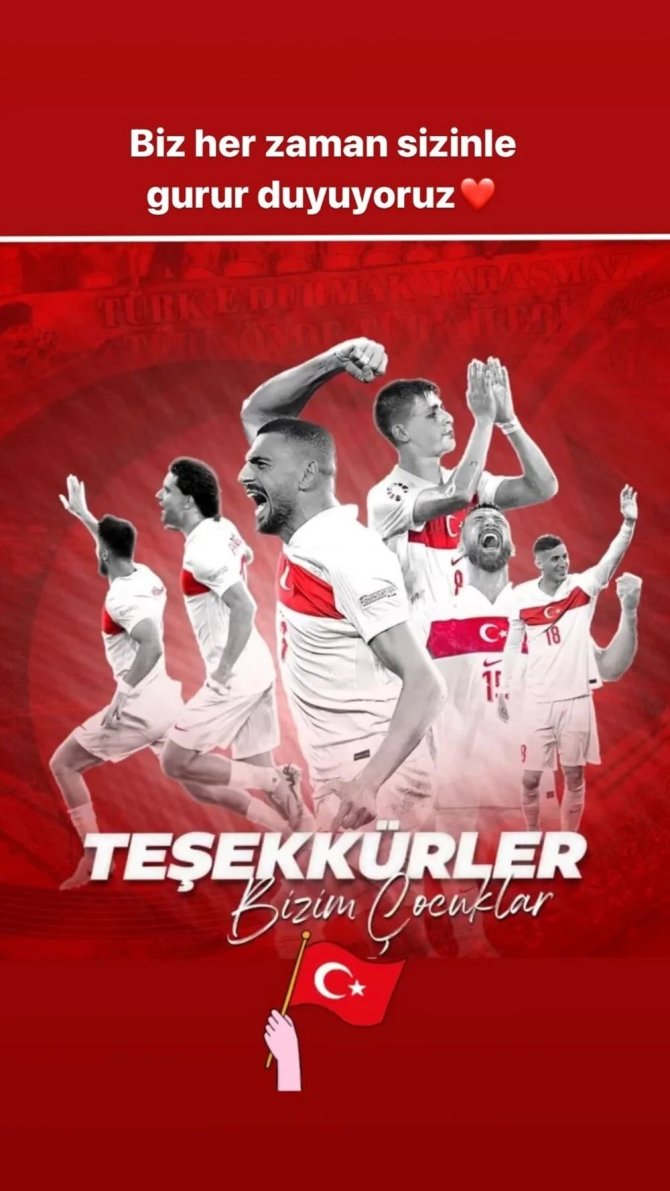 Bu mağlubiyetin ardından ünlü isimler, Milli Takım'a sosyal medya üzerinden destek mesajları gönderdi. İşte ünlülerin EURO 2024'e veda sonrası yaptığı paylaşımlar...