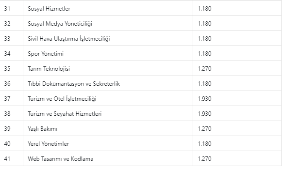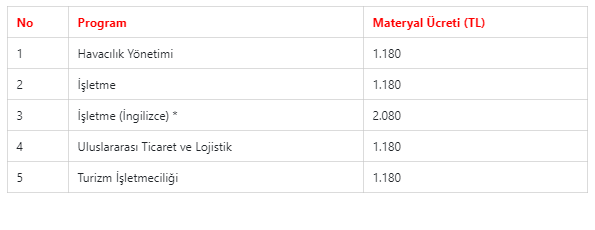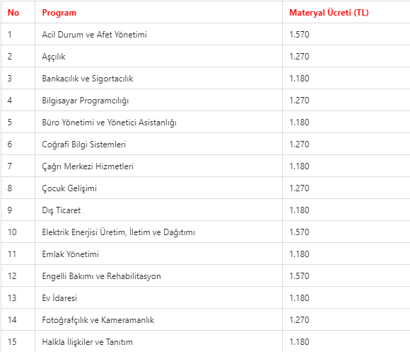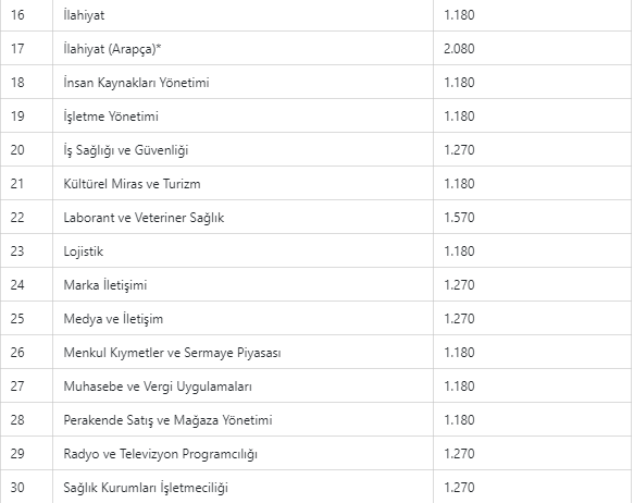 Önceki dönem 1095 lira olan yabancı dil eğitimli programların ücretleri ise 2 bin 80 lira oldu.