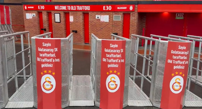 Kırmızı Şeytanlar, Sarı kırmızılı taraftarlara misafirperverliklerini Old Trafford’un etrafına yerleştirdikleri “hoş geldiniz” yazısı ve Galatasaray amblemiyle gösterdi.