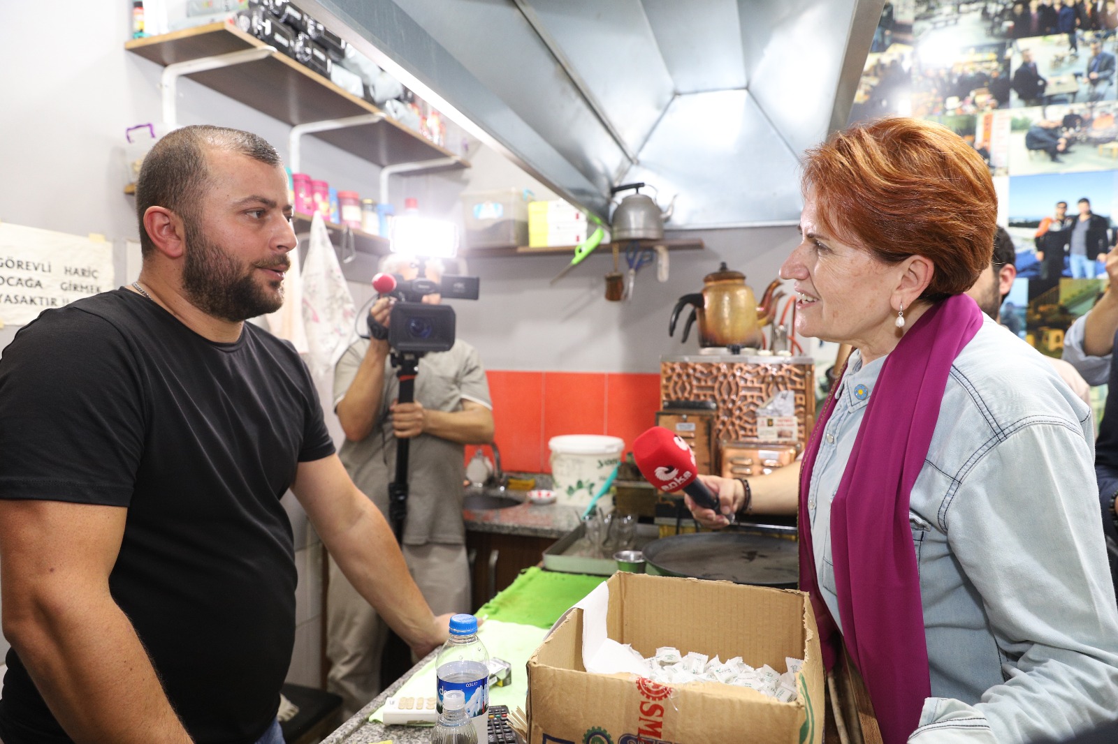 İki buçuk yıldır il il, ilçe ilçe, esnaf esnaf gezdiğini hatırlatan Akşener, "O esnaf dükkanlarında çaresiz gençler, EYT''ye takılan mağdur insanlar, gebe ineğini kesime gönderen süt üreticileri, ağlaya ağlaya ineklerini kesime gönderen besiciler gördüm. Bu sene nisan ayındaki gübreyi atamadı çiftçilerimiz, köylülerimiz. Su kullanırken elektrik parasından inim inim inleyen çiftçilerimizi gördük. Akan derelerden, akan sulardan para alan özel elektrik şirketlerini gördüm. Çiftçilerin başına demir yumruk gibi inen özel şirketler gördüm. Ve bunlara bigane kalan bir iktidar var." dedi.