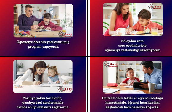 Matematiksiz olmaz! Hiçbir sınav hiçbir sıralama matematiksiz yapılamaz. Sınav başarısının, sıralamaları alt üst edip üstlere yerleşmenin ilk anahtarı matematik netlerinden geçiyor. Gerek sınav başarısını gerek okullardaki ders başarısını destekleyen Best Matematik, online matematik özel ders seçenekleri ile her şeye sil baştan başlamayı teklif ediyor.
