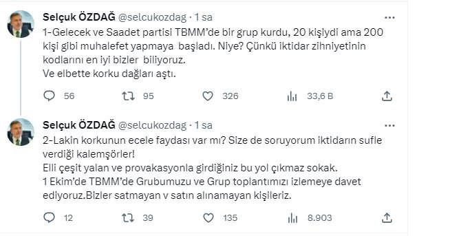 Gelecek Partisi Yönetim Kurulu Üyesi Selçuk Özdağ söz konusu iddia ile ilgili şu aşıklamada bulundu:
