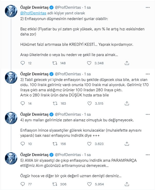 5) AMA bir siyasetçi de çıkıp enflasyonu indirdik ama PARAMPARÇA ettiğimiz Alım gücünüzü arttıramıyoruz demeyecek… Özgür hoca ve diğer bir çok değerli uzman demişti dersiniz…
