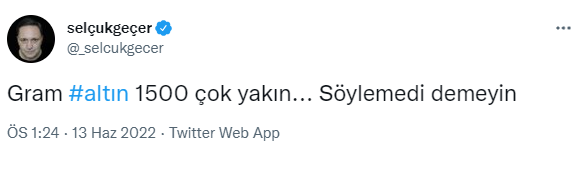 Geçer, "Gram altın 1500 çok yakın... Söylemedi demeyin" şeklinde konuştu.